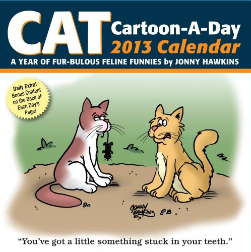 In a world where 75 percent of American pet cats sleep in bed with their owners, the connection between people and their feline friends warrants comic introspection. The Cat Cartoon-A-Day 2013 Calendar serves up a fancy feast of cat conundrums and kitty capers as cartoonist Jonny Hawkins highlights the (im)balance of the human/feline relationship.From reader reviews: